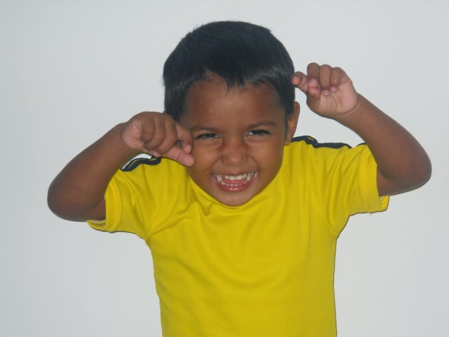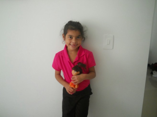 The good thing is that someone took a video for us, though. It was our translator. I’ll tell you how we met her. Well, we were on our way from Bogota to Monteria on what was supposed to be a very quick flight when we flew right through a storm! I am prone to motion sickness so this did not go well for me. All the jolting and bumping and lightning added up to what made me sick. I reached for the bag but some went on my shirt and shorts. It was rather humiliating. When our very kind translator Maribel arrived she understood completely. She grew up here in Monteria and lives here now. She speaks very good English which is a relief for us after being emmersed in a language that is hard for us to understand. We are trying hard to learn it though. I got some good pictures of the kids this morning. Here they are: