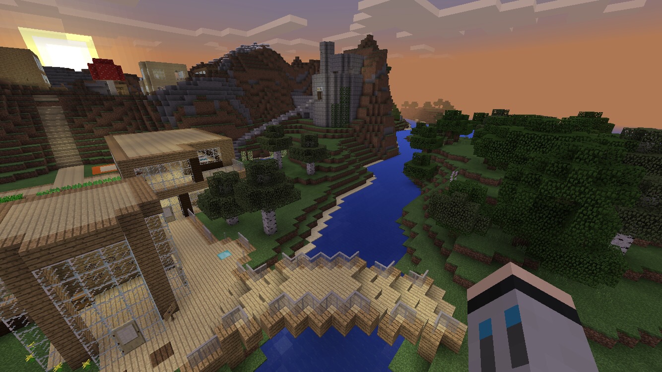There are multiple game modes to choose from, but the main two are Creative and Survival. In Survival mode, you drop into a blocky world with diverse landscapes and nothing to call your own. After some hard work, you begin to build up your resources, and build whatever you want! You want some wood? Go outside and beat a tree down with your bare fists for wood planks! Need some light and maybe some stronger tools? Build a crafting table with your recently acquired wood, make a pickaxe, and dig a hole in the ground or take to a cave for some coal and iron ore.